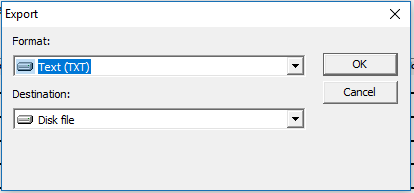 4. Selecione a opção 'Text (TXT)' no campo Format e clique em OK: