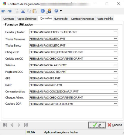4. Na aba Formatos, vincule os formatos FEBRABAN;