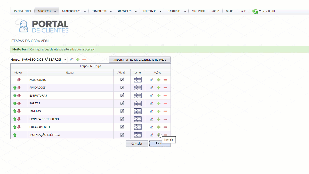 ERP MEGA - Portal de Clientes - Como cadastrar as etapas da obra