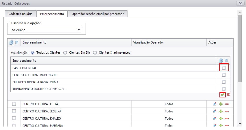4. Marque o Empreendimento desejado e salve;