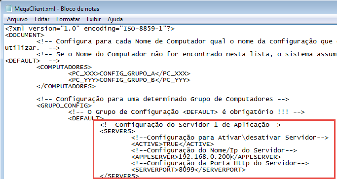 3. Localize a tag responsável pelo servidor de aplicação, conforme imagem abaixo: