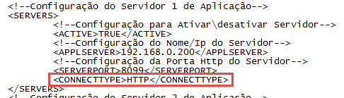 3.1. Insira após a tag SERVERPORT uma nova tag chamada CONNECTTYPE, conforme a imagem a seguir:
