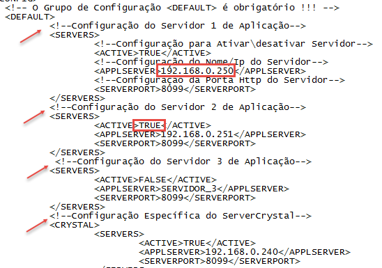 4.3. Na terceira seta, é possível configurar um terceiro servidor de aplicações, caso exista, altere a tag ACTIVE para TRUE e a tag APPLSERVER com o IP do terceiro servidor de aplicações.