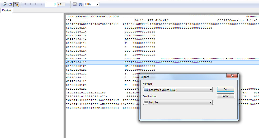 Este incidente ocorre, pois não foi inserido o pré-script do formato para emissão do Sintegra, ou no momento de exportar o Sintegra os campos Delimiter e Separator estão preenchidos.