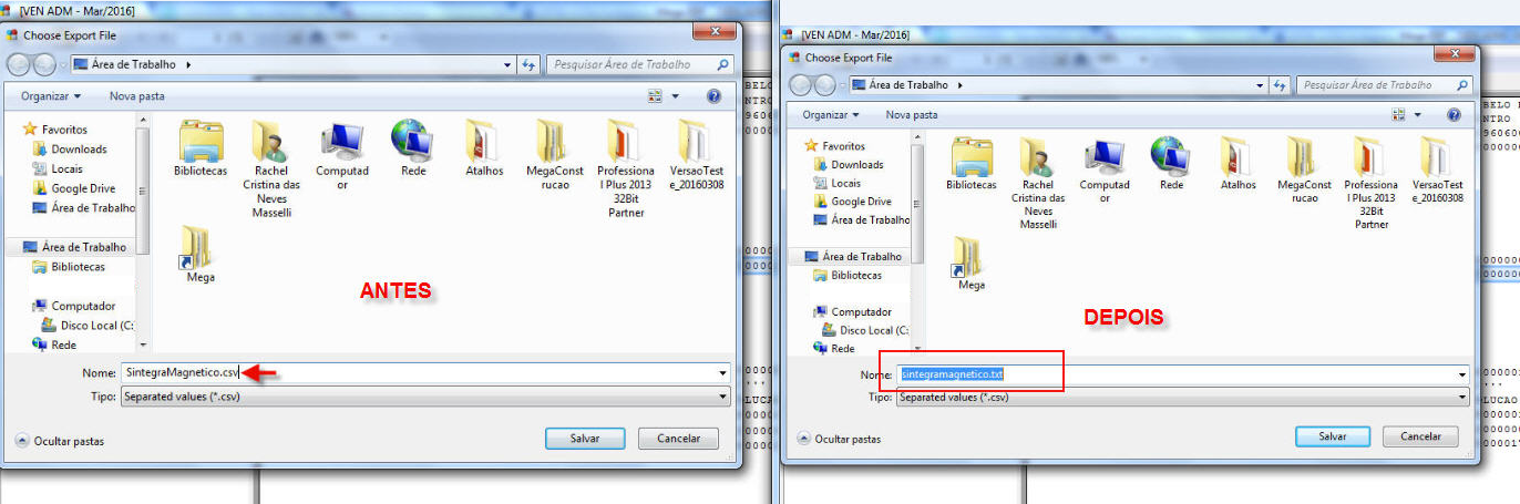 4. Altere a extensão do arquivo de .csv para .txt e salve no local desejado: