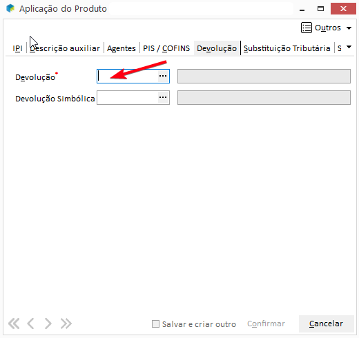 3. Na aba Devolução, no campo Devolução, selecione a aplicação que deverá ser utilizada na devolução: