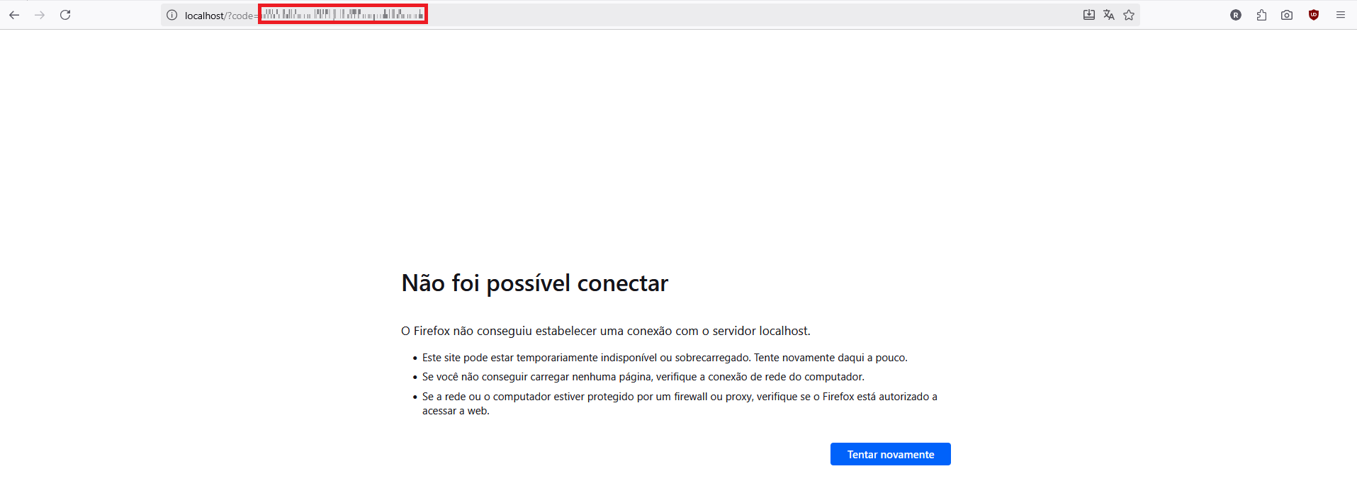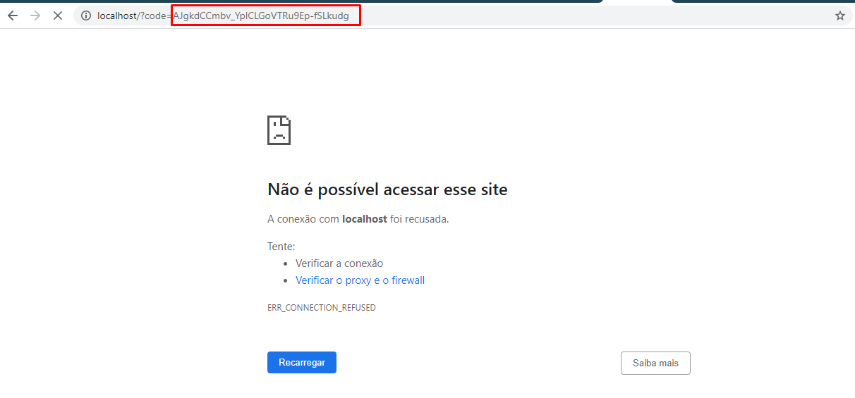 Na URL deverá mostrar "https://localhost/?code=" e um código após o =.