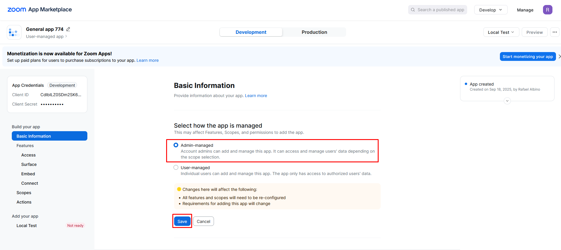 Na tela a seguir, selecione a opção "Admin-managed" e salve as alterações: