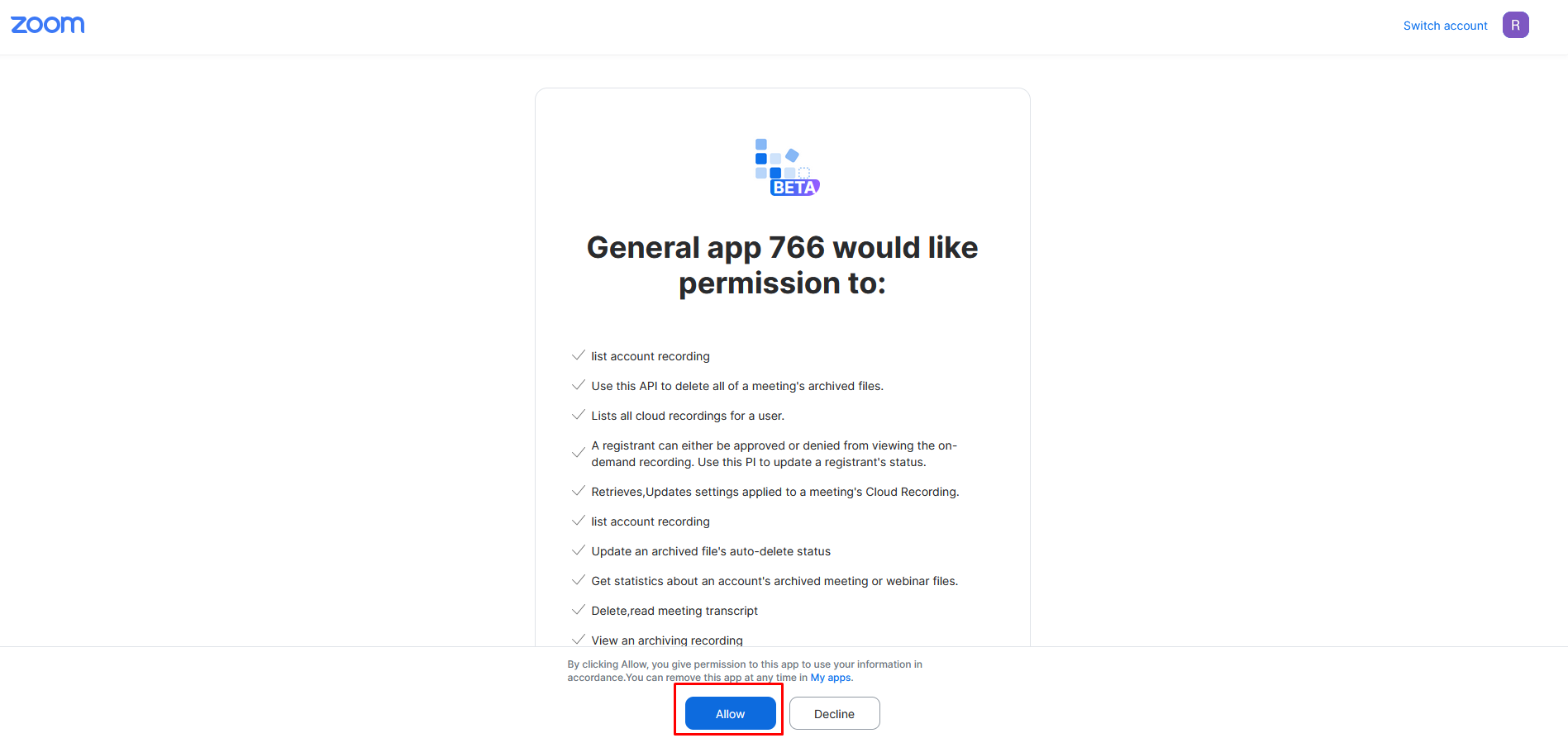 Finalizando essa etapa, devemos retornar ao Zoom e clicar para continuar: