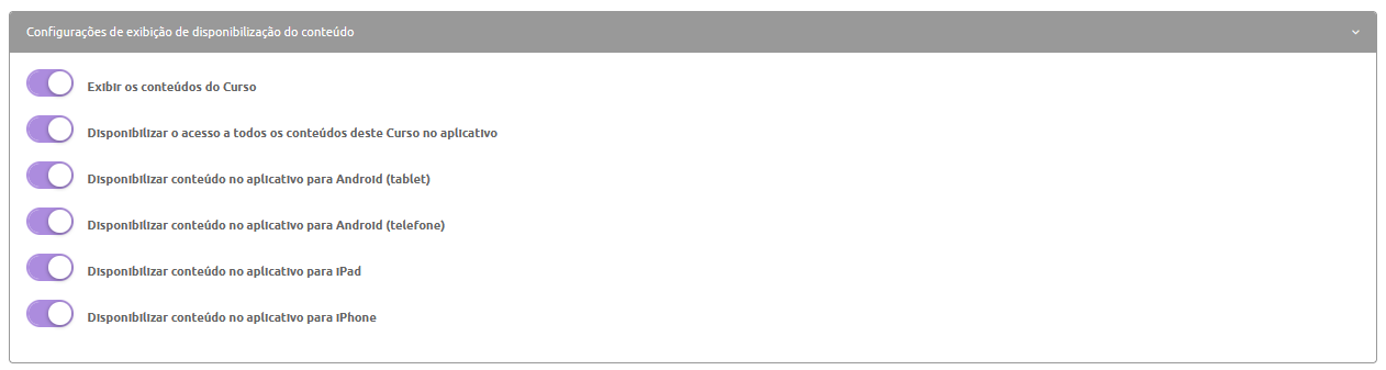 Disponibilizar o acesso a todos os conteúdos deste curso no aplicativo: Caso você deseje que os alunos possam acessar os conteúdos também pelo aplicativo, ele deve habilitar a funcionalidade.