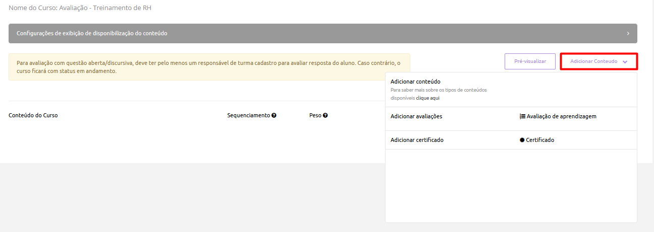 Para mais informações sobre como criar avaliações, por favor, consulte o artigo sobre avaliações clicando aqui.