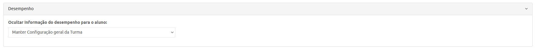 Desempenho: você pode optar por ocultar ou mostrar as informações do desempenho para o aluno na sala de aula.