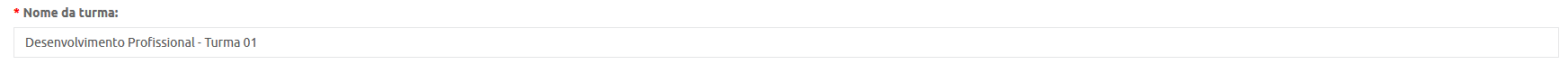 Nome da Turma: campo obrigatório, é necessário informar o nome da turma. Caso haja interesse, essa informação pode ser gerada automaticamente pela plataforma, por meio de uma configuração no Configurador Geral.
