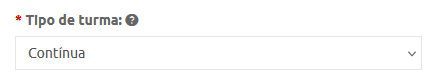 - Contínua: o tempo de duração da turma é definido em dias. Cada aluno pode iniciar o curso em datas diferentes, mas terão o mesmo número de dias para encerrar os estudos. A contagem do tempo em dias inicia a partir da data que foi realizada a matrícula. Só é possível cadastrar turmas contínuas em cursos do tipo a distância e prova.