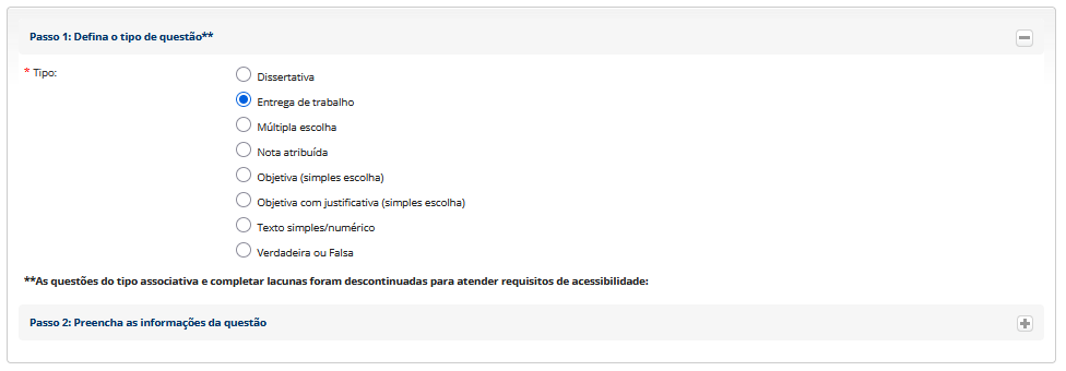 Passo 1 - selecione o tipo "entrega de trabalho".