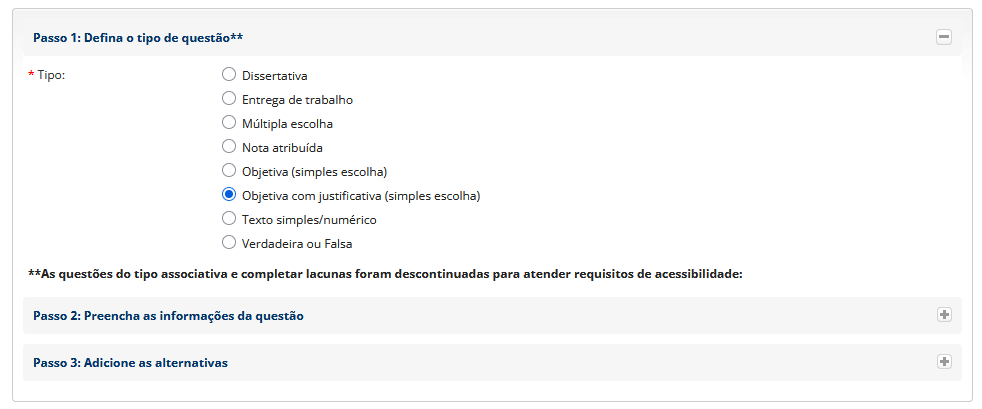 Passo 1: selecione a opção "Objetiva com justificativa (simples escolha)".
