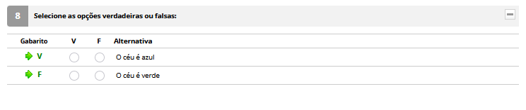 Alternativa: selecionar se a alternativa é verdadeira ou falsa.