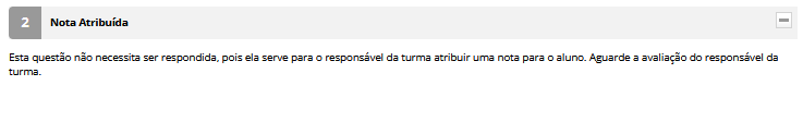 É uma questão que não precisa ser respondida pelo aluno, serve apenas para o professor inserir uma nota, que pode, por exemplo, ser referente a sua participação em atividades extras, interações no fórum e chats ou outro critério avaliativo que o professor deseja pontuar para cálculo da aprovação/reprovação do aluno.