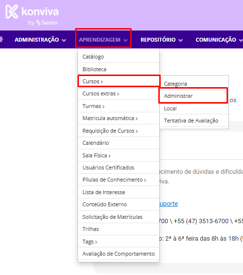 Você terá acesso a todos os cursos cadastrados no seu ambiente.