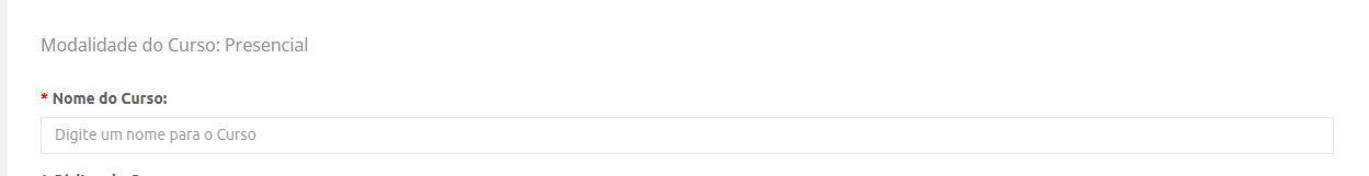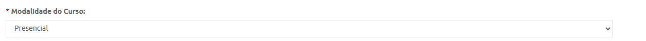 Modalidade de curso: a modalidade define como o curso será realizado, neste caso, já selecionamos a opção presencial. Lembrando que após a criação do curso nesta modalidade, não é possível alterar.