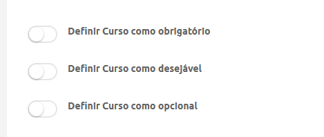 Definir curso como obrigatório, desejável ou opcional: o administrador pode classificar o curso como obrigatório, desejável e opcional e direcioná-lo para públicos-alvo específicos. Esta funcionalidade ajuda a comunicar ao aluno os treinamentos mais prioritários e adequados ao perfil do aluno. Disponibilizamos um artigo sobre esta funcionalidade, você pode acessar clicando aqui.