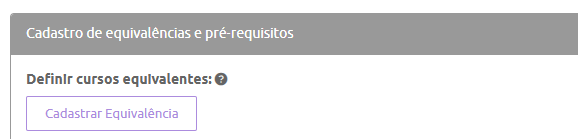 Definir cursos equivalentes: tem o objetivo de considerar que os conhecimentos adquiridos em um curso são equivalentes aos conhecimentos adquiridos em outro. Assim, a pessoa pode evitar ter que refazer disciplinas já cursadas. Para saber mais sobre esta funcionalidade, acesse o artigo clicando aqui.