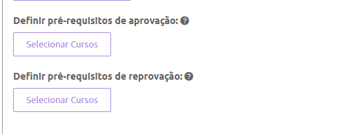 Definir pré-requisitos de reprovação: você pode definir um curso para que tenha um pré-requisito de reprovação, ou seja, o aluno precisa estar reprovado em um ou mais cursos antes de se matricular no curso que está sendo cadastrado.