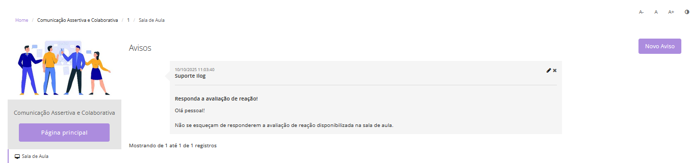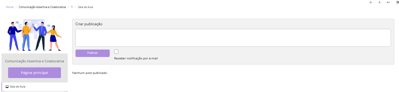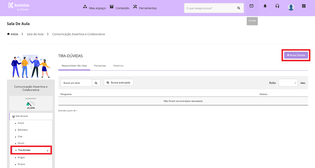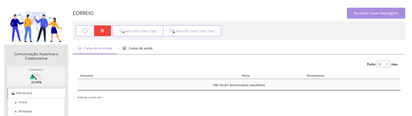 O Correio da Sala de Aula é uma ferramenta de comunicação interna que permite a troca de mensagens entre os alunos matriculados e o(s) tutor(es) ou instrutor(es) da turma.