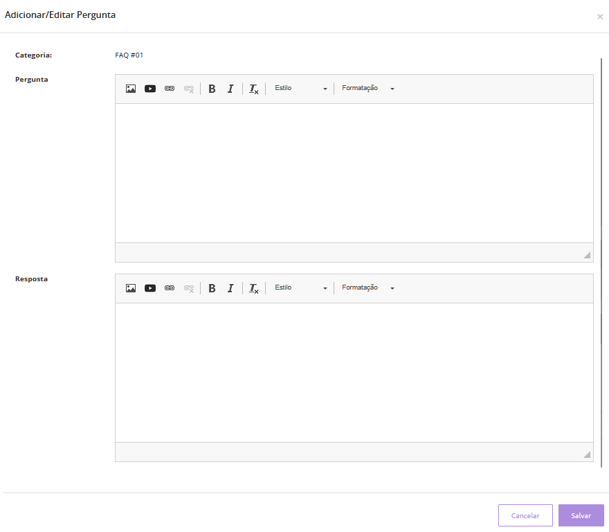 Ao clicar em "Sim", você deverá inserir a pergunta e resposta da sua FAQ: