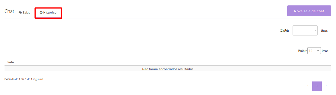 Uma nova guia chamada Histórico será exibida. Caso a opção Gravar Histórico tenha sido ativada, será possível visualizar todas as mensagens trocadas na sala de chat.