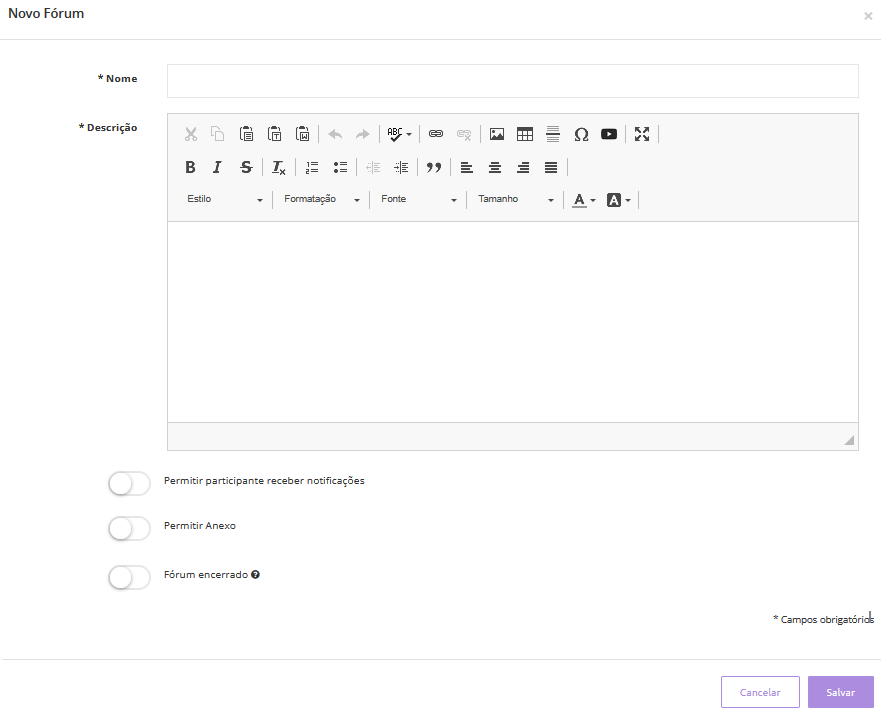 Após preencher todas as informações, clique em Salvar para concluir a criação. O novo fórum será adicionado à sala de aula e ficará disponível para os participantes.