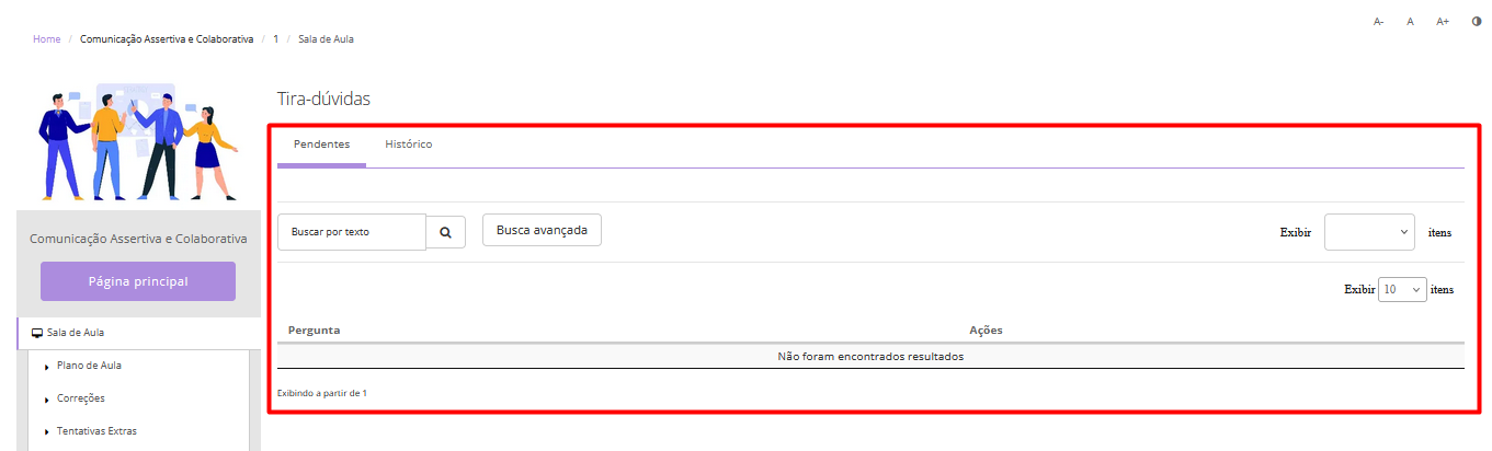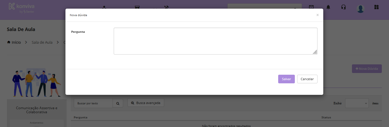 Quando o aluno clicar em salvar a dúvida, o responsável da turma conseguirá visualizar e responder a dúvida do aluno: