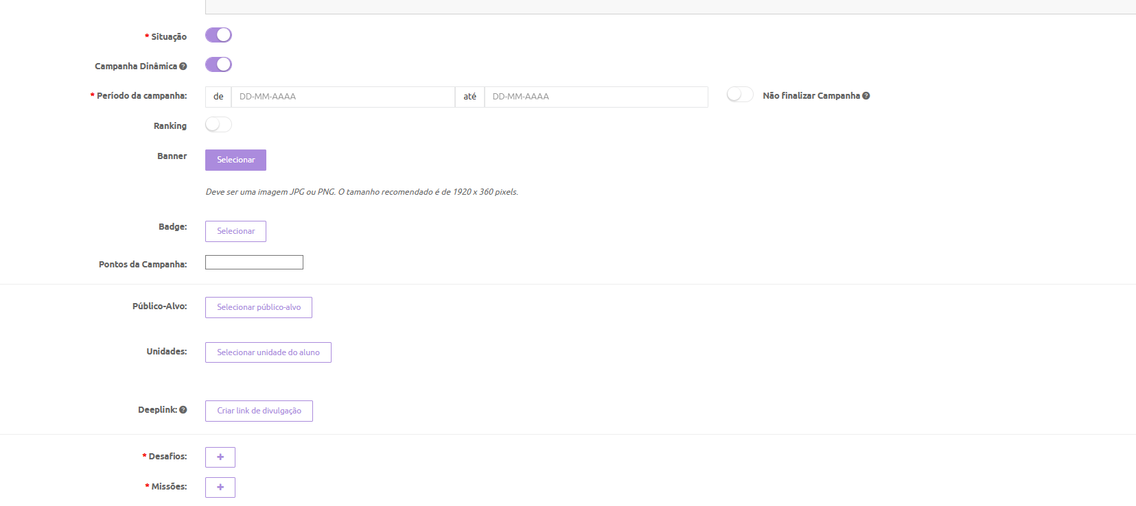 Mesmo após o lançamento, é possível inserir ou excluir desafios e editar as missões, tornando a campanha dinâmica. Agora você pode também criar campanhas sem uma data fim, para engajar o aluno nos desafios por tempo indeterminado, em um processo contínuo de capacitação gamificada.