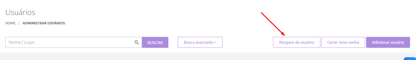 O Resgate de usuários é uma nova funcionalidade que permite aos perfis de gestor, administrador geral e de unidade, consultar o cadastro de todos os usuários com status de inativo, independente da unidade em que estavam vinculados enquanto eram ativos na plataforma.