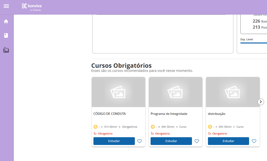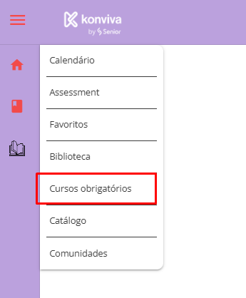 Já acessando direto o menu Cursos obrigatórios tem o intuito de divulgar cursos obrigatórios que estão pendentes ao usuário. Então, a regra para exibição é: