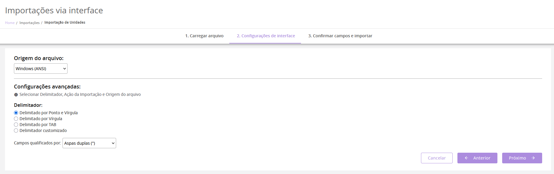 Importante: Caso você selecione a origem do arquivo diferente do arquivo, pode ocorrer alteração em caracteres especiais como acentos, ocorrendo a duplicidade de alguns dados. Recomendamos ler nosso artigo sobre as diferenças de ANSI e UTF-8 clicando aqui.