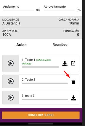 Download já realizado, a opção atual é para remover o conteúdo baixado: