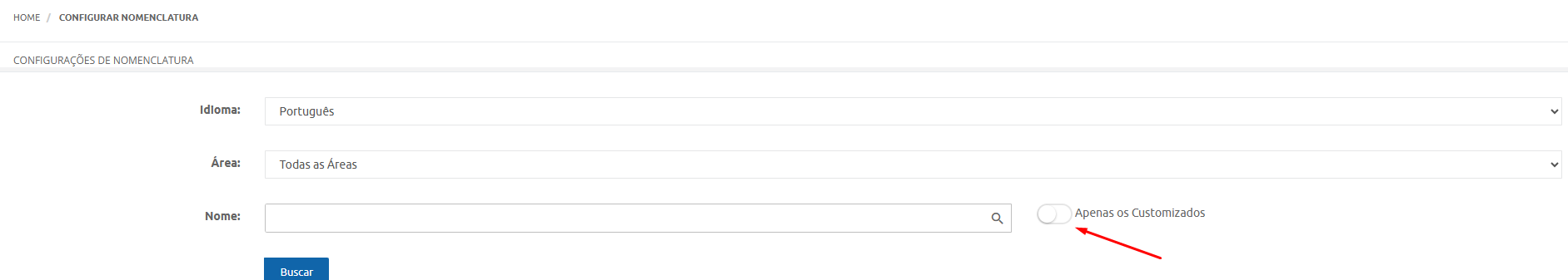 Ou se você já customizou algumas nomenclaturas e deseja localizá-las com mais facilidade, basta selecionar a opção “ Apenas os customizados”.