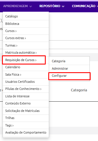Aprendizagem → Requisição de Cursos → Configurar