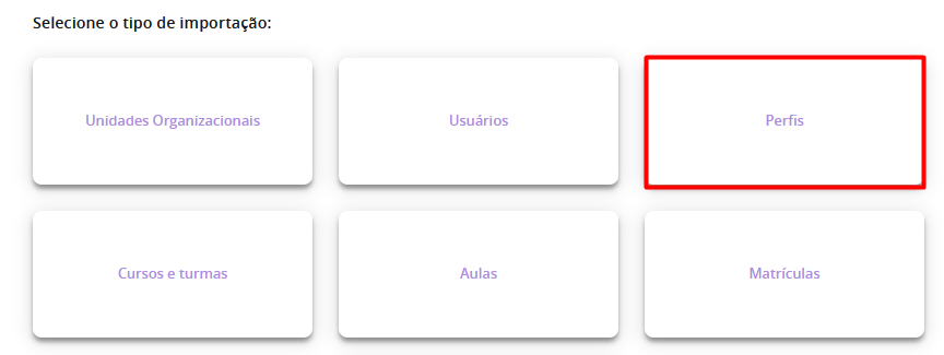 Acesse menu Administração > Importações > Administrar e selecione a opção de "Perfis"