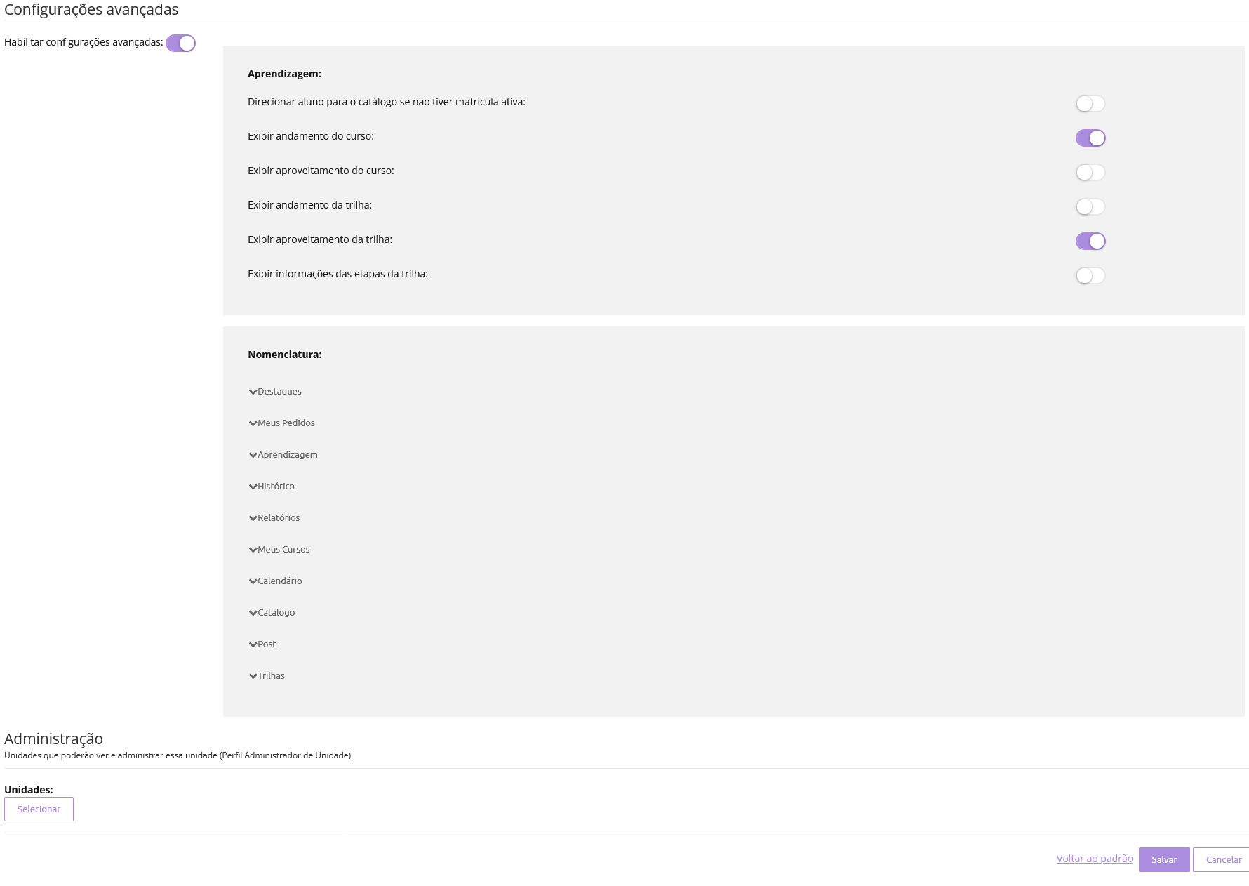 Você pode realizar configurações específicas para os alunos desta unidade: