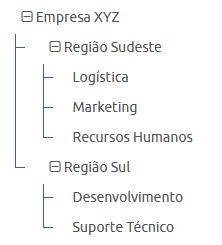 Nesse exemplo, temos uma unidade raiz (Empresa XYZ) de onde partem todas as demais unidades filhas, também chamadas de subunidades.