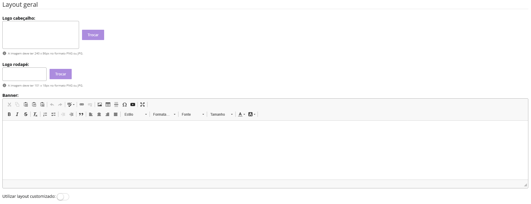 - Logotipo rodapé: O logotipo que será mostrado no rodapé do Konviva especificamente para esta unidade criada, caso não seja configurado irá mostrar o logotipo já configurado para todos o sistema no configurador de layout;