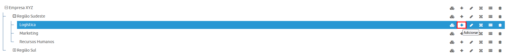 - Clique no botão (+) na unidade raiz qual você quer criar a subunidade;