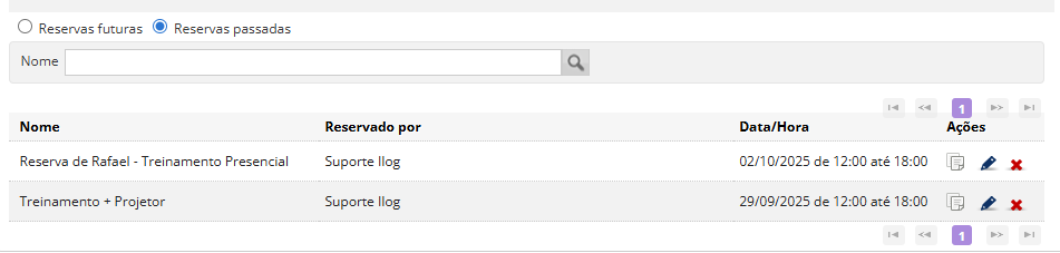 - Após salvar a reserva, as informações serão mostradas em reservas futuras e reservas passadas :