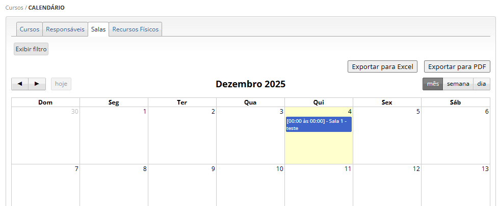 As salas físicas servem para criação e reserva de salas e recursos em cursos/turmas ou para outros eventos específicos, externos ao sistema.
