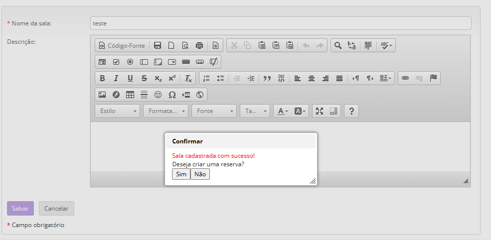 Ao salvar a sala de aula, um modal será exibido para você agendar a reserva.