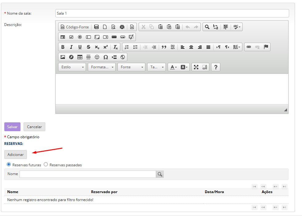 Após a criação da sala de aula, você poderá agendar a reserva desta sala para uma Turma.