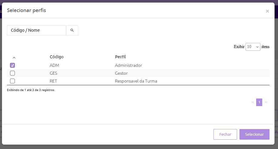 Em Perfil, você como administrador poderá definir quais outros perfis cadastrados na Konviva poderão ter acesso a este relatório personalizado.