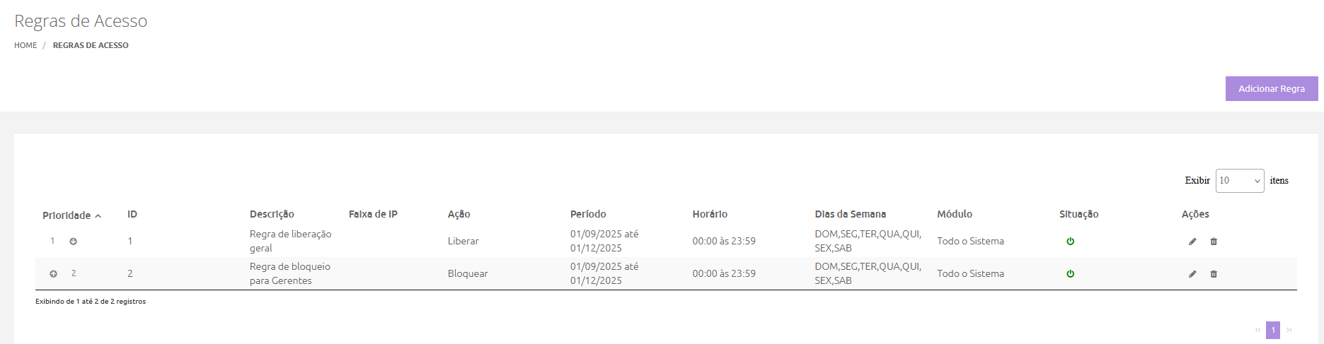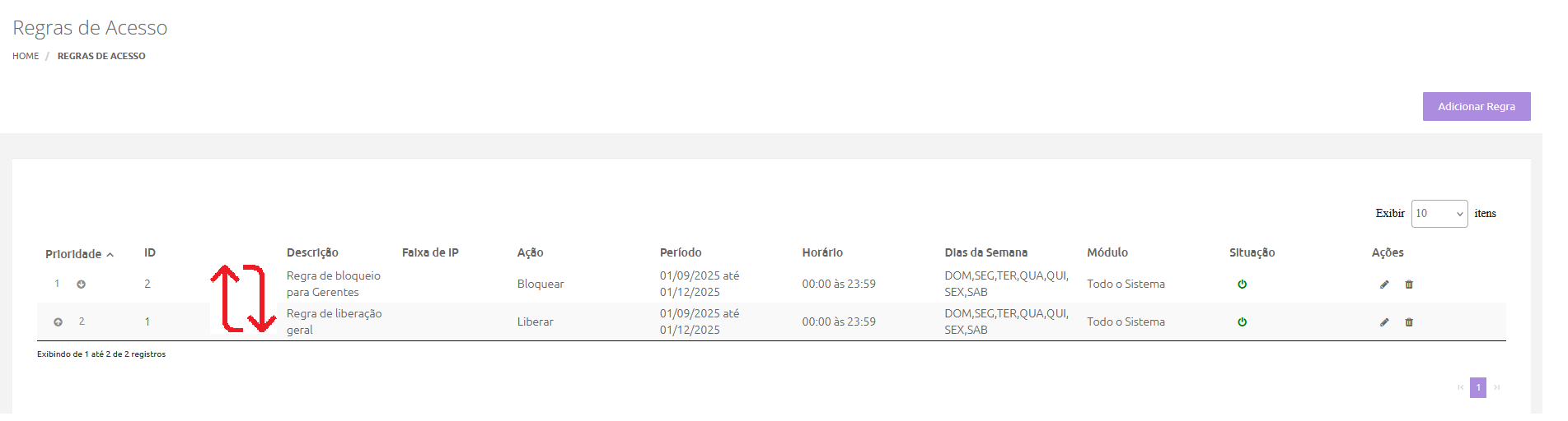 A Konviva sempre processa as regras de acesso conforme a ordem de prioridade definida pelo administrador.
